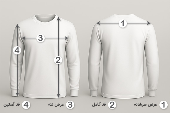 | Size | عرض سینه | قد پیش | قد آستین |